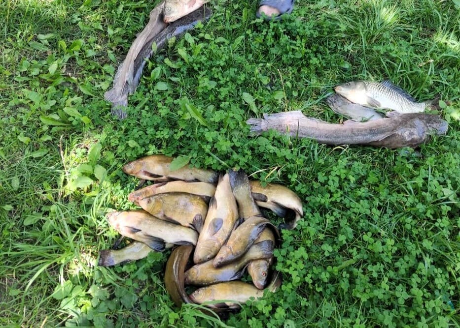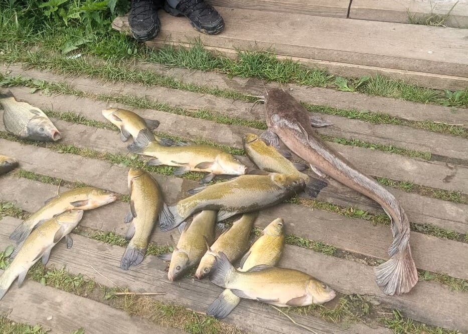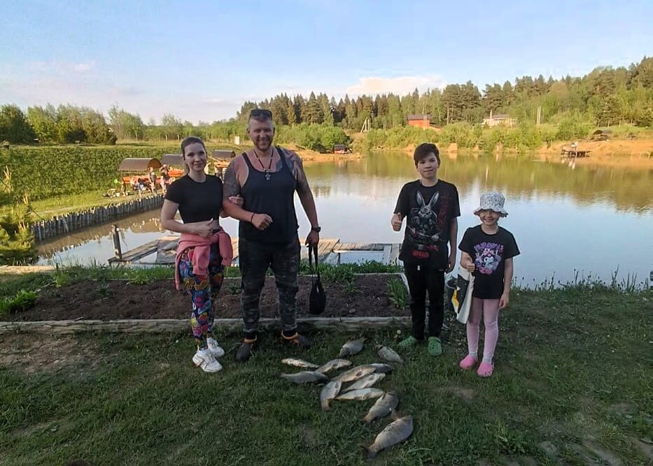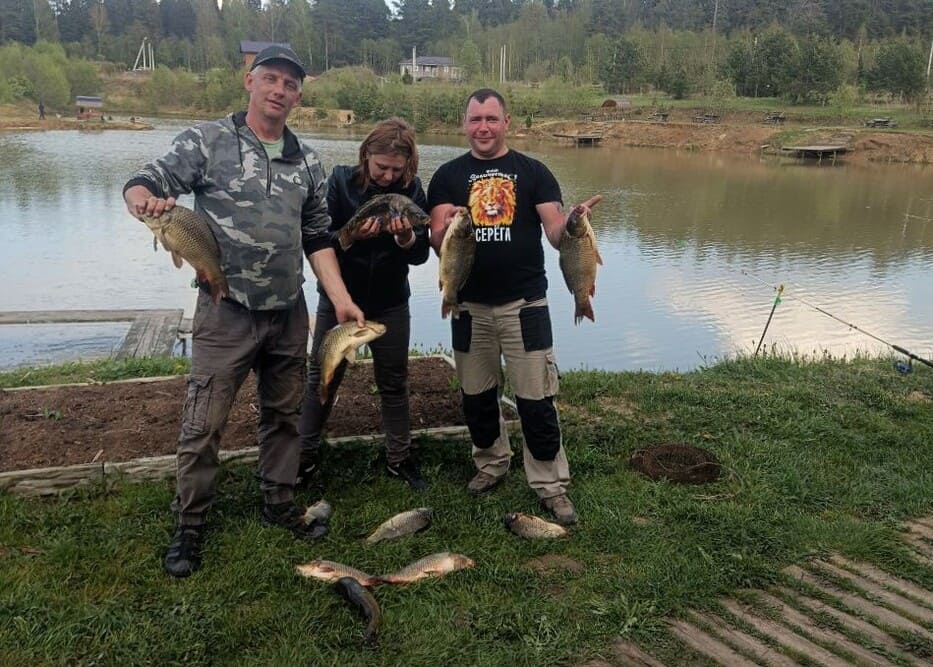 Карп, щука, линь, сом - клюёт стабильно. Средний карп у нас — почти 1,5 кг, сом - еще больше. Прикормка у нас — проверенная, работает. Инструктор подскажет, если впервые да и если нет.